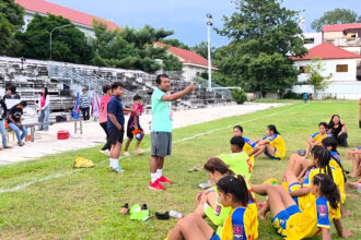 ធនាគារមេយប៊ែង និង ស.ស.យ.ក. រាជធានីភ្នំពេញ ក្នុងភាពជាដៃសហការបានរៀបចំកម្មវិធីហ្វឹកហាត់បាល់ទាត់ដែលមានវត្តមានគ្រូជំនាញៗបាល់ទាត់កម្រិតពិភពលោកមកពី Manchester United Soccer School ក្នុងការមកចែករំលែក និងបណ្តុះបណ្តាលបាល់ទាត់វគ្គខ្លីទៅដល់ក្មេងៗកម្ពុជា។ កម្មវិធីពិធីនេះធ្វើឡើងក្រោមអធិបតីភាព លោក រ័ត្ន សោភ័ណ នាយកប្រតិបត្តិ និងជានាយកប្រចាំប្រទេស នៃធនាគារ មេយប៊ែង ខេមបូឌា និង លោកស្រី ពុធ ធីតា ប្រធានក្លឹបបាល់ទាត់បឹងកេតតំណាង សហភាពសហព័ន្ធយុវជនកម្ពុជារាជធានីភ្នំពេញ។